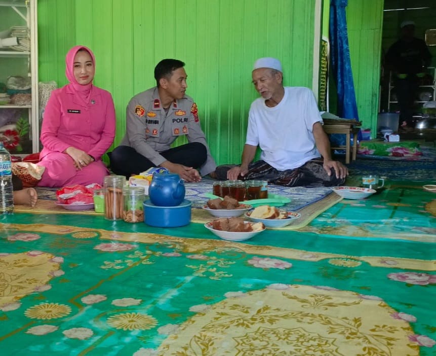 Kapolsek Kelumpang Selatan dan Ketua Bhayangkari Ranting Silaturahmi ke Tokoh Agama Guru Mufron (Kai Busu)