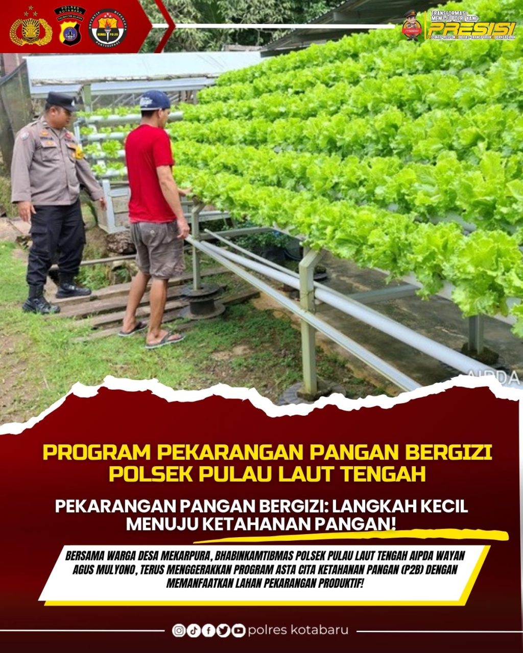 #AstaCitaPolri #PolisiPeduliPangan #PekaranganBergizi #KetahananPangan #PolsekPulauLautTengah #KotabaruHijau