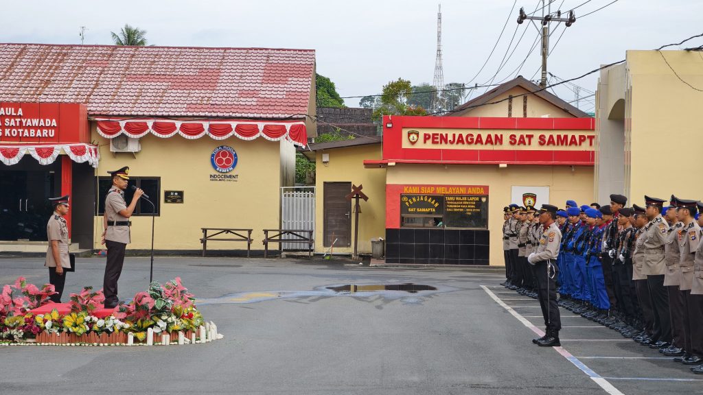 Upacara dipimpin oleh Wakapolres Kotabaru KOMPOL ANDI AHMAD BUSTANIL, S.I.K., M.H. selaku Inspektur Upacara. Kegiatan diikuti oleh personel Polres Kotabaru yang terdiri dari Pleton PJU, Pleton Perwira, Pleton Gabungan Bag, Sat dan Sie, serta Pleton ASN Polres Kotabaru.
