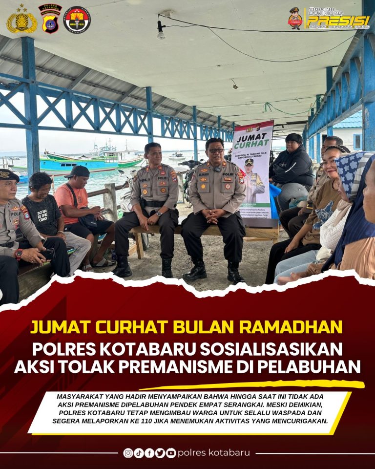 Polres Kotabaru Polda Kalsel – Polres Kotabaru kembali menggelar program Jumat Curhat, kali ini bertempat di Pelabuhan Pendek Empat Serangkai...