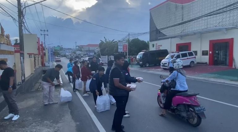 Polres Kotabaru Polda Kalsel _Menjelang waktu bedug, jajaran Satuan Intelkam Polres Kotabaru mengandeng kalangan mahasiswa kompak turun ke jalan membagikan...