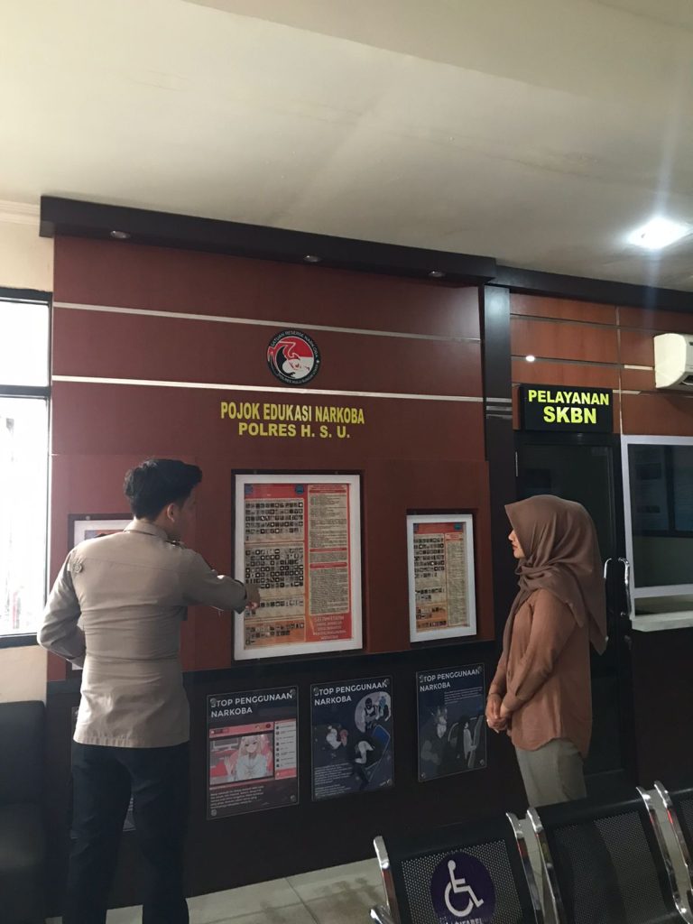 Jakarta. Kasat Resnarkoba Polres Hulu Sungai Utara (HSU), Kalimantan Selatan, AKP Sutargo, membuat pojok edukasi bahaya narkoba di ruang pelayanan...